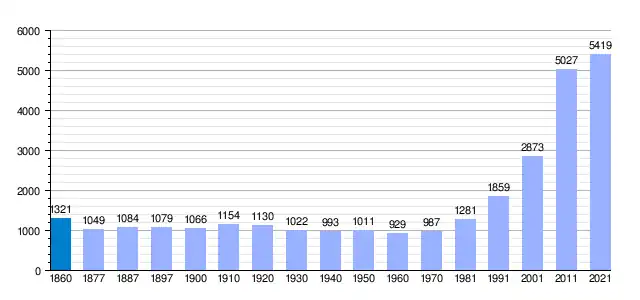 | Gráfica de evolución demográfica de Santa Cristina de Aro[3] entre 1860 y 2021 |