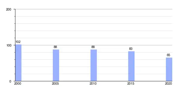 | Gráfica de evolución demográfica de Paradela entre 2000 y 2020 |