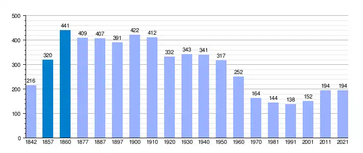 | Gráfica de evolución demográfica de Santa Cruz de la Serós[3] entre 1842 y 2021 |