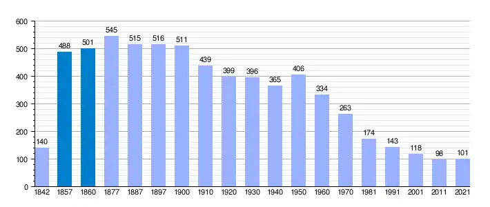 | Gráfica de evolución demográfica de Santa Cruz del Valle Urbión[5] entre 1842 y 2021 |