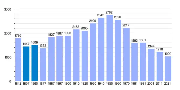 Población de derecho según los censos de población del INE. Población de hecho según los censos de población del INE. En 1857 disminuye el término del municipio porque independiza a Quintana del Marco.[7] |