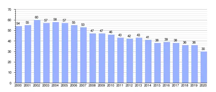 | Gráfica de evolución demográfica de Santa Eugenia[2] entre 2000 y 2020 |