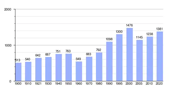 En 2020 registró una población de 1381 personas, lo que corresponde al 7.89 % de la población municipal.[1][7] De los cuales 604 son hombres y 777 son mujeres.[1][7]
