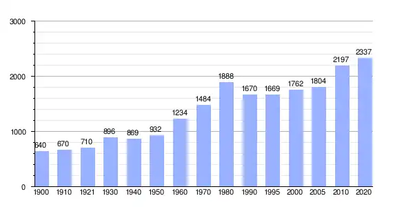 En 2020 registró una población de 2337 personas, lo que corresponde al 2.03 % de la población municipal.[7] De los cuales 1165 son hombres y 1172 son mujeres.[7]