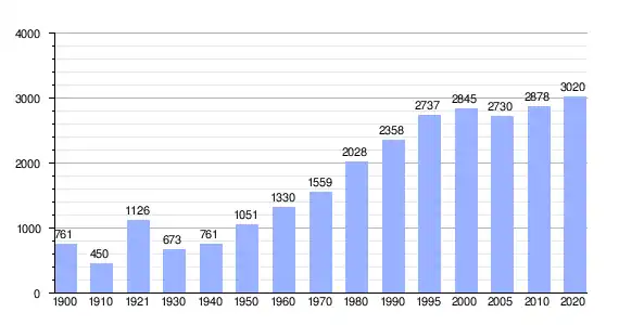 En 2020 registró una población de 3020 personas, lo que corresponde al 5.00 % de la población municipal.[9] De los cuales 1362 son hombres y 1658 son mujeres.[9] Tiene 814 viviendas particulares habitadas.[9]