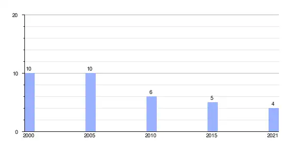 | Gráfica de evolución demográfica de Pena (aldea) entre 2000 y 2021 |