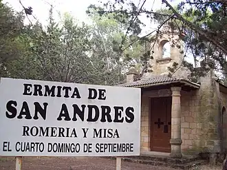 Al pie de la carretera que bordea el pantano está la pequeña ermita de San Andrés, cerca de donde se hallaba el pueblo.