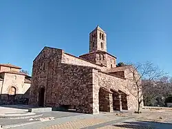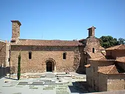 Este edificio románico, de principios del siglo XII, se encuentra al sur del recinto y tiene una planta basilical. La cabecera, con el ábside de herradura por dentro, y cuadrado en el exterior, pertenece a un templo de construcción anterior. El techo de la nave es de bóveda apuntada y el del transepto es de bóveda semicircular. En el crucero se levanta el cimborrio octogonal coronado por un pequeño campanario de torre de dos pisos, con un tejado de cuatro vertientes. El cimborrio y la parte alta de los muros del norte y oeste tienen decoración lombarda, con fajas y arquería ciega. La puerta de entrada es sencilla, de arco de medio punto con relieves de terracota encima y una sillería aprovechada. En la fachada sur hay un pórtico de cuatro arcos de medio punto, restos del claustro de la canonjía agustiniana del siglo XII