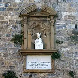 El Ayuntamiento de Pamplona le dedicó la plaza de Santa María la Real a la situada delante del Palacio Episcopal de Pamplona junto al Baluarte del Labrit sobre cuyo portón, en una hornacina, hay una reproducción en piedra.[10] También se conoce dentro de la ciudad al Barrio de Santa María la Real a una parte del Barrio de la Milagrosa situada a continuación del Segundo Ensanche.[11]