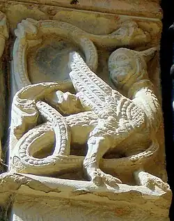Santa María de Agramunt. Capiteles en puerta de Acceso -