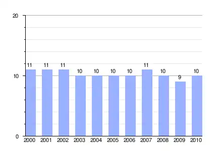 Población de derecho (2000-2010) según los censos de población del INE a 1 de enero de cada año.[3] |