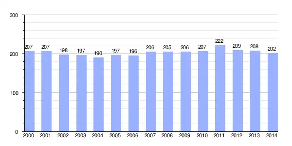 | Gráfica de evolución demográfica de Santa Olaja de la Ribera[2] entre 2000 y 2014 |