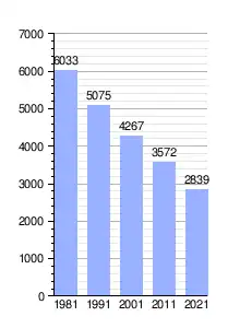Desde entonces la población viene disminuyendo rápidamente, pasando a estar por debajo de 10 000 habitantes en el censo de 1970, y de 5000 en el de 1991.