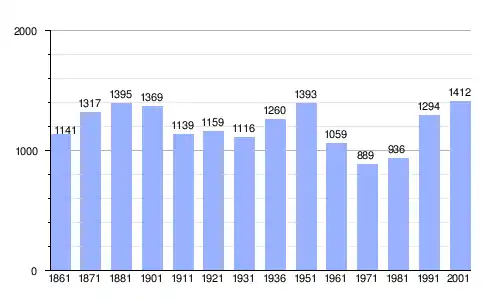 | Gráfica de evolución demográfica de Santo Stefano di Rogliano entre 1861 y 2001 |