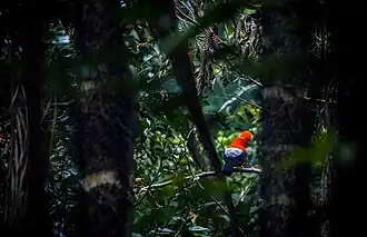 Gallito de las rocas en el Santuario Nacional Pampa Hermosa.