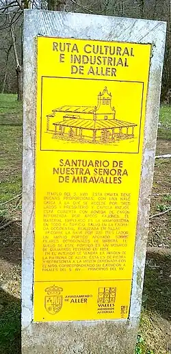 El santuario de Nuestra Señora de Miravalles está muy ligado al río Aller cuyo nombre se repite hasta siete veces, antes del año 1200, en los Archivos de la Catedral de Oviedo siendo le mención más antigua la de 857.[1][2] El concejo de Aller está situado en área central del sur de Asturias y es muy montañoso ya que está rodeado de cumbres de más de 2 000 m s. n. m., no en vano la salida por la parte sur oriental a la meseta hay que hacerla subiendo el puerto de San Isidro donde está el pueblo de «La Raya», del que sus lugareños dicen que es el «pueblo más alto de Asturias», y donde empieza la provincia de León.