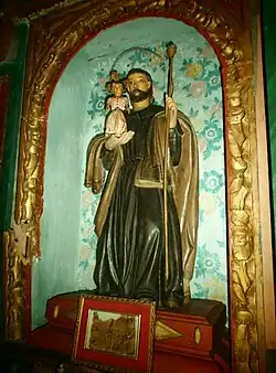 (…) habiéndose compuesto la capilla que está al lado del evangelio en la capilla mayor de dicha iglesia, que estaba a pique de arruinarse, estaba sin imagen ni adorno, por lo que suplicó el mayordomo a la Cofradía el que se hiciese un «San José Patriarca», con su Niño de bulto y atendiéndose a su necesidad y para aumentar y fomentar su devoción acordaron se hiciese y dorase dicha imagen a costa de la cofradía.Libro del Santuario
