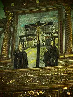 Con otros 400 reales se pagó al pintor Jerónimo de la Cassa por las pinturas de ambos colaterales y por los frontales. En estos altares hay sendos frescos, uno que representa la Asunción de Nuestra Señora, que tiene la siguiente leyenda en latín: exaltata est, sancta Dei Genitrix, super coros angelorumin coelestia regna; y otro que representa la Coronación de la Santísima Virgen como reina de los ángeles y tiene la siguiente leyenda: Regina Angelorum.[20] El «Libro del Santuario» dice textualmente en su folio 39: