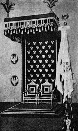 - ↑ "The last king of Poland was Stanisław August Poniatowski. His royal throne, or mainly its backrest, was decorated with eagles beautifully embroidered in gold and silver, symbolizing Poland. When the Germans seized Warsaw in World War II, the governor of German-occupied Poland ordered the eagles taken down and presented to German officers as a souvenir." Danuta Szmit-Zawierucha (20 de septiembre de 2006). «Following in the Footsteps of Kings». www.warsawvoice.pl. Consultado el 14 de abril de 2009.