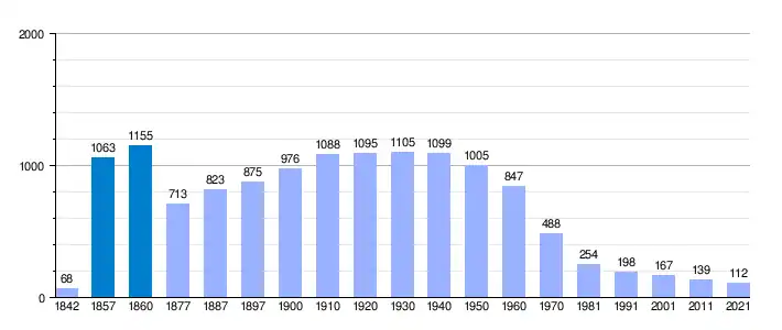 Población de derecho según los censos de población del INE     Población de hecho según los censos de población del INEEntre el censo de 1857 y el anterior, crece el término del municipio porque incorpora a Ayoluengo, Lorilla, Moradillo del Castillo, San Andrés de Montearados, Santa Coloma del Rudrón y Valdeajos.[4]