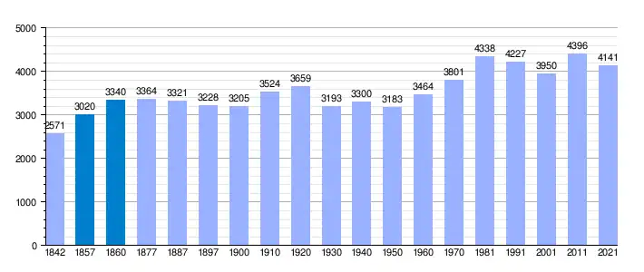 | Gráfica de evolución demográfica de Sariñena[12] entre 1842 y 2021 |