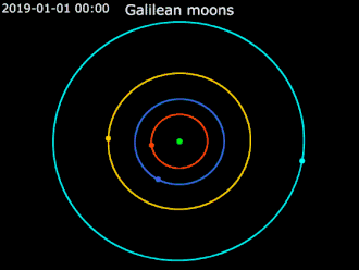 Animaciones GIF que representan las órbitas lunares galileanas y la resonancia de Ío, Europa y Ganímedes