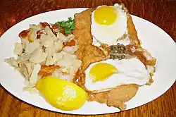 La preparación de este schnitzel se realiza con trozos de carne que se empanan en harina y se fríen en mantequilla. Tras esta operación se añaden cuatro trozos de pan blanco tostado y un huevo frito (Spiegelei). Los trozos de pan se diferencian según se emplee como acompañamiento salmón ahumado, filetes de sardinas o caviar. Todo se sirve junto en el mismo plato adornado de alcaparras; en algunas ocasiones, se acompaña de judías y patatas asadas.