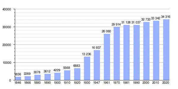 Desde la Segunda Guerra Mundial a la actualidad la población de la ciudad se ha triplicado. Todos los datos históricos relativos al actual municipio, el siguiente gráfico refleja su evolución demográfica.