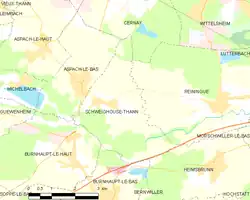 - Ubicación de Schweighouse-Thann y de sus comunas limítrofes en un mapa de Francia (enlace roto disponible en Internet Archive; véase el historial, la primera versión y la última).