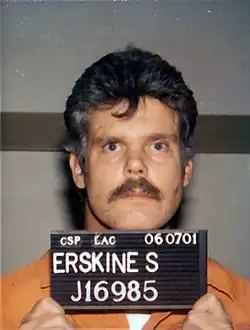 En 1993 Erskine llevó a su casa a una mujer que esperaba el autobús y la mantuvo como rehén durante varios días, violándola y sodomizándola repetidamente antes de dejarla en libertad. Por este acto fue nuevamente arrestado y declarado culpable de violación y secuestro, recibiendo una condena de 70 años.[3]