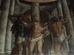 El mercader Pierfrancesco Borgherini admiraba la Piedad pintada por Sebastiano en Viterbo y le encargó al pintor decorar su capilla en la iglesia de San Pietro in Montorio de Roma. El 6 de septiembre de 1521 Sebastiano comunicó a Miguel Ángel su intención de pintar al óleo el muro y le solicita ayuda: este le envió el dibujo de Cristo en la columna que Sebastiano pintará finalmente en 1524 (el pequeño dibujo de Miguel Ángel se conserva hoy en el Museo Británico).