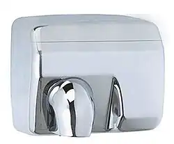 El secador de manos (a veces simplemente secador) o secamanos es un dispositivo eléctrico que se encuentra frecuentemente en baños de uso común, como estaciones de servicio, universidades, oficinas, etc. Pueden operar con el uso de un botón de activación o mediante un sensor infrarrojo de movimiento que desencadena su activación automática. Este artefacto funciona de la misma manera que una estufa, expulsando aire caliente a las manos de quien lo activa.El secador de manos tiene las siguientes ventajas: -Eviten el contacto con otras superficies entre el lavado y secado. -Estos aparatos se alimentan de la corriente eléctrica y se empotran a la pared, lo que ayuda a ahorrar espacio.