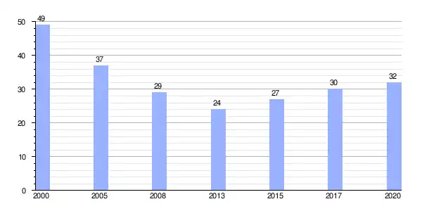 | Gráfica de evolución demográfica de Seceda (parroquia) entre 2000 y 2020 |