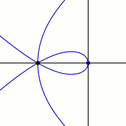 Esta es otra curva de la familia. La inversa con respecto al otro polo produce otra curva más de la misma familia y las dos inversas son a su vez inversas entre sí. Por lo tanto, cada curva de la familia es miembro de un triplete, de forma que cada una de las tres curvas pertenece a la familia y es inversa de las otras dos. Los valores de q en esta familia son