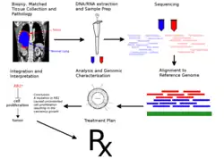 El proceso de tumorigénesis que transforma una célula normal en una cancerosa implica una serie de complejos cambios genéticos y epigenéticos.[19][20][21] La identificación y caracterización de todos estos cambios puede llevarse a cabo mediante diversas estrategias de secuenciación del genoma del cáncer.