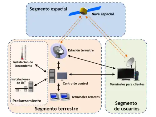 Estos elementos están presentes en casi todas las misiones espaciales, ya sean comerciales, militares o científicas. Pueden estar ubicados juntos o separados geográficamente, y pueden ser operados por diferentes partes.[5] Algunos elementos pueden admitir múltiples naves espaciales simultáneamente.