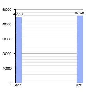 | Gráfica de evolución demográfica de Seixal, Arrentela e Aldeia de Paio Pires entre 2011 y 2021 |