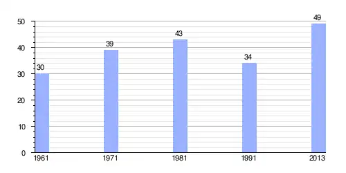 | Gráfica de evolución demográfica de Selakovići entre 1961 y 2013 |
