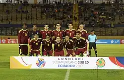 La selección de fútbol de Venezuela, también conocida popularmente como La Vinotinto,[3] es el equipo formado por jugadores de nacionalidad venezolana que representa a la Federación Venezolana de Fútbol (FVF) en las competiciones oficiales organizadas por la Confederación Sudamericana de Fútbol (Conmebol)[4] y la Federación Internacional de Fútbol Asociación (FIFA), desde su creación en 1925.[5]