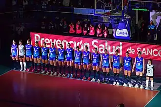 Las panteras, selección argentina de vóley femenino antes de jugar la final con el seleccionado de Perú. Al ganar 3-0 la selección argentina consiguió, por primera vez, el pase a los Juegos Olímpicos de Río de Janeiro 2016.