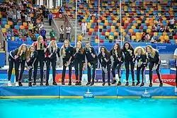 - Ana Grbac, Marina Miletić, Mirela Delić, Sanja Popović, Cecilia Dujieć, Mia Jerkov, Marina Katić, Katarina Barun, Senna Ušić, Ivana Miloš, Jelena Alajbeg y Maja Poljak. Entrenador: Miroslav Aksentijević.