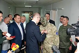 - ↑ Арсеній Яценюк відвідав дніпропетровську лікарню, де перебувають поранені бійці АТО, Government portal (1 September 2014)