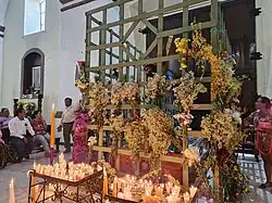 27. Altares Cuaresmales:Tal y como son el elemento principal de la Reseña, en este cortejo también vuelven a protagonizar. Los Cobaneros suelen elaborar altares en la puerta de sus hogares o negocios; mientras el Nazareno realiza su recorrido rumbo a Catedral. En algunos altares se suele realizar el rezo de una estación del Santo Viacrucis.