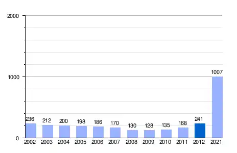 | Gráfica de evolución demográfica de la Senda de Granada entre 2002 y 2021 |