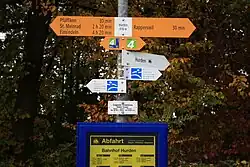 Suiza tiene una red extensa de caminos con señales en cruces. La ruta de la E1 va de Konstanz a Wattwil, y entonces sigue la ViaJacobi (parte del Camino de Santiago) para llegar a Lago de los Cuatro Cantones en Brunnen. De Brunnen sigue la orilla del lago a Flüelen. De Flüelen a la frontera italiana, la antigua vía del tren es utilizada y marcada como Fernwanderweg 2. El camino entonces sube sobre el Paso de San Gotardo, el punto más alto del camino a 2.091 m. Después de seguir el Strada alta Leventina a través de Ticino, la E1 llega a la frontera en Porto Ceresio, Italia.