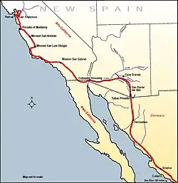 - ↑ Frontera, Alejandro Domínguez / La Voz de la. «Recuerdan inicio de ruta de Juan Francisco de Anza y la colonización de la Alta California». La Voz de la Frontera | Noticias Locales, Policiacas, sobre México, Mexicali, Baja California y el Mundo. Consultado el 30 de julio de 2024.