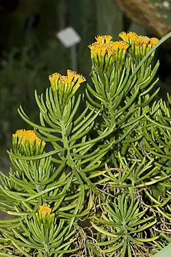 Senecio barbertonicus (Klatt) es una especie de arbusto suculento perennifolio de la familia Asteraceae en el género Senecio, originaria de Sudáfrica.[1][2] También se cultiva en otros lugares por su resistencia a la sequía, los grupos de las dulcemente perfumadas flores[3] de color oro amarillo, son atractivas a las mariposas, en particular a Vanessa cardui.[4][3]