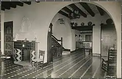 Rafael Masó también diseñó todo el interior del chalet, desde la distribución de las habitaciones hasta los muebles, puertas, pavimentos, techos…, aunque únicamente se tiene noticia de cómo eran el vestíbulo y el comedor. En estas dos estancias el suelo era de azulejos hidráulicos donde se alternaban líneas verticales claras con líneas más anchas de color oscuro. El techo se apoyaba en vigas de madera entre las cuales se intercalaban casetones decorados con un rombo. Con respecto al resto, destacaba el uso de la madera tanto en los muebles, ventanas y puertas como en otros detalles como por ejemplo en las paredes del vestíbulo (forradas con planchas de madera), en la barandilla de la escalera o en el reloj del recibidor. Los motivos decorativos más repetidos en los muebles fueron los rombos y los anillos torneados (muy típicos en los muebles de Masó) que seguían diferentes formas y ritmos de repetición. Masó también utilizó la cerámica verde y amarilla en el interior, en este caso en una de las chimeneas (la del comedor) donde los azulejos dibujaban líneas en zigzag. La chimenea del hall era de piedra moldurada y es muy posible que perteneciera a una masía.