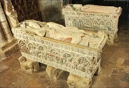 Conservan parte de la primitiva policromía, que las hacía maravillosas urnas funerarias, y están esculpidas en ellos las ceremonias religiosas y familiares de los entierros principescos de la Edad Media, constituyendo un valioso documento para el estudio de la indumentaria...son dos monumentos capitales en la historia del arte funerario español, desde el punto de vista de las costumbres, los trajes, los muebles, la panoplia, los arneses y la heráldica del siglo XIII.