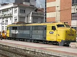 ![]() Locomotora 316.008 (1608) de COMSA estacionada en la estación de Tarragona. | ||